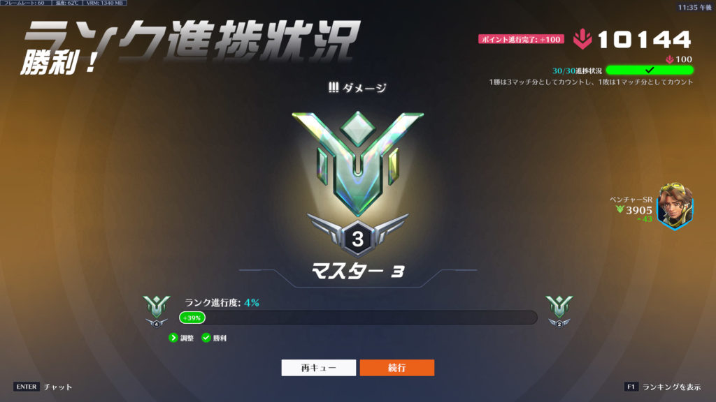 画像は今期のピークレートのM3。ひたすらソロベンチャーOTPです。